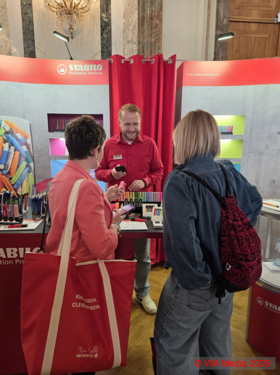 A – There are surprises no trade fair organiser wants to have to experience. An external ticket scanning server problem in the middle of the morning rush hour at the entrance certainly ranks among the top ten. Whereby the fact that a long queue briefly formed in front of the entrance of the Hofburg Palace at markeding Vienna on April 14, 2026, can also be seen as an indication of the high standing Austria’s largest trade fair for merchandise and promotional items has in the local marketing world.